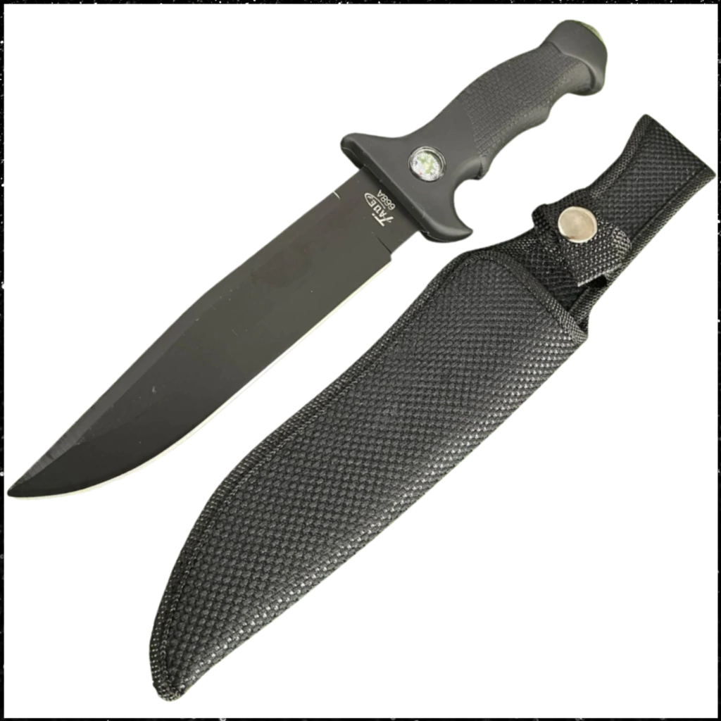 Esta faca é perfeita para servir de ferramenta para qualquer aventureiro, seja no Camping, na pesca, na caça ou onde se faz necessário o uso de uma lâmina completa e funcional! Lâmina de fio liso e revestimento em teflon, dorso serrilhado e abridor de garrafas.